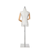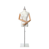 This FT05 Female White Torso with Arms and Silver Cap is the perfect addition to your clothing display. With its sleek silver cap and realistic arms, it provides a professional and stylish way to showcase your products. Elevate your store's visual appeal with this high-quality torso.