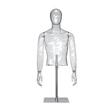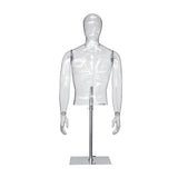 Upgrade your boutique display to a 5-star standard with the TM1 Male Transparent Torso with Arms. Made with durable polycarbonate for a transparent body and high-quality stainless-steel stand. Perfect for showcasing high-end apparel in a professional, scientific, and objective manner.