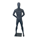 A professionally sculpted Matt Black Mannequin featuring a muscular physique in a standby stance. Ideal for high-impact retail displays or professional rental purposes. The MMB14 model delivers exceptional visual merchandising capabilities.