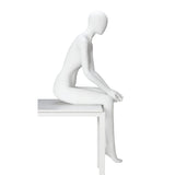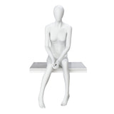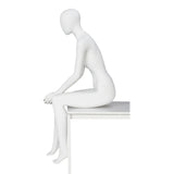 Introducing the ST-31 Seated Female Matt White Faceless Mannequin, perfect for window display. This mannequin's sitting position adds a unique touch to any storefront, while its faceless design allows for flexible styling. A professional choice for displaying your merchandise.